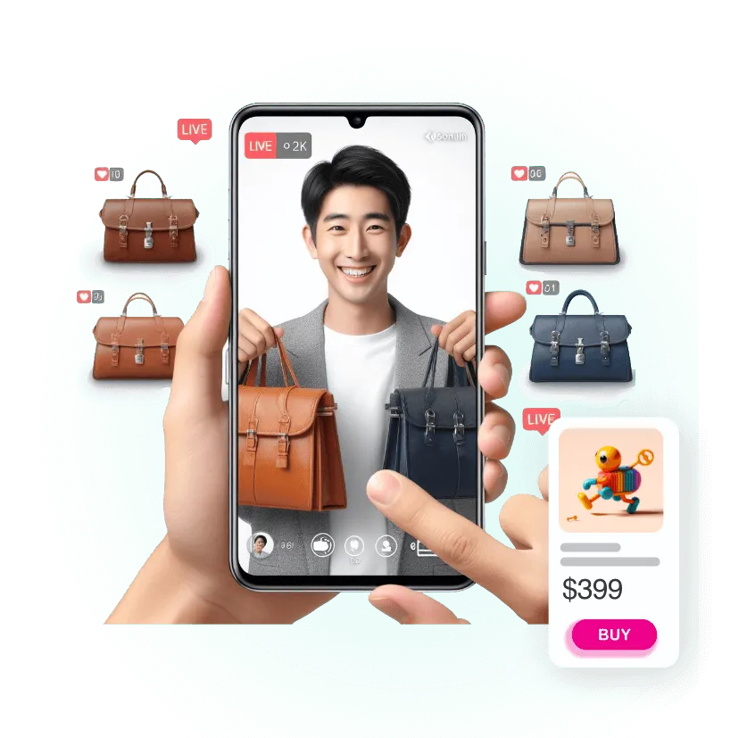 就醬播的全方位收單系統(FB / IG / TK / LINE / 社團加單 / 貼文加單 / 商城加單),讓您可以在多個社群平台同時直播,買家只需要一個購物車結單,多社群平台直播銷售讓您直播覆蓋率增加,觸及更多的潛在買家。