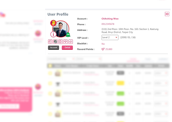 透過訊息傳遞的同時,可以同步了解買家的相關資訊,並設定VIP等級,紅利點數以及相關優惠。
