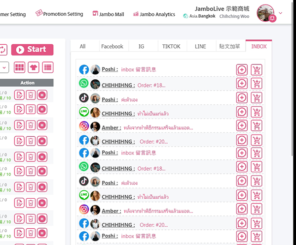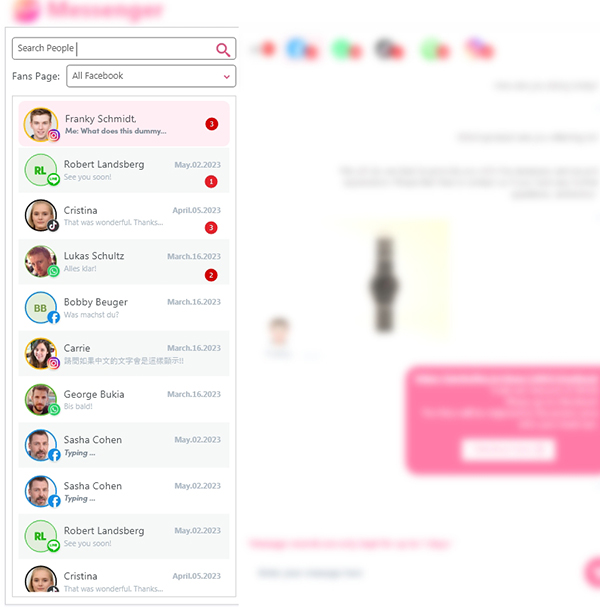 多渠道的訊息列表FB/IG/TIKTOK/LINE/Whatsapp