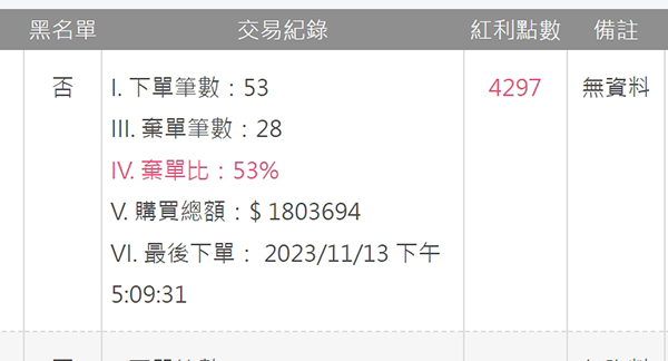 粉絲小幫手可以幫助您了解每一位買家的下單筆數,棄單筆數,以及最後的購買時間跟購買金額,方便您分析了解您的買家消費輪廓。
