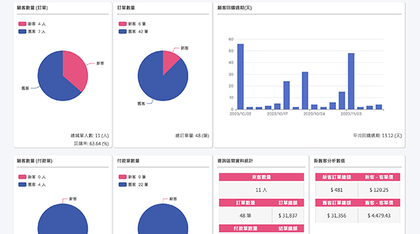 透過數據整合了解產品銷售狀況,以及FB流量新舊客比例分析廣告投放效果,以及消費著行為分析等,為您的直播事業更進一步成長做準備。